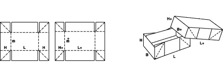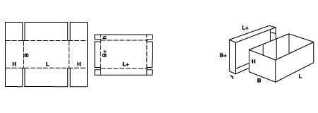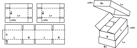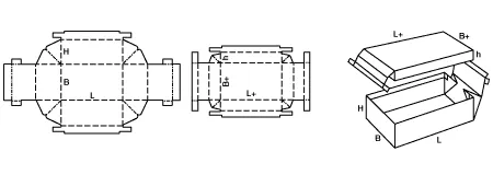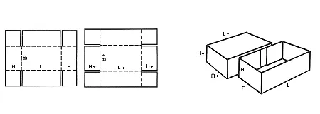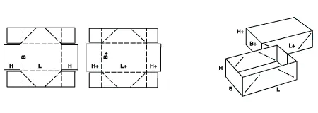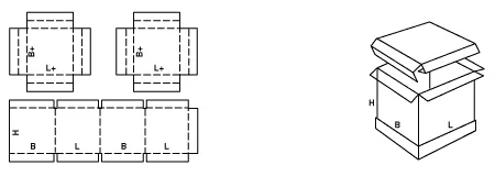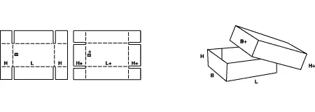 Телескопические ящики FEFCO 03 состоят из отдельного корпуса и крышки, при этом крышка полностью закрывает короб, обеспечивая дополнительную защиту продукции.