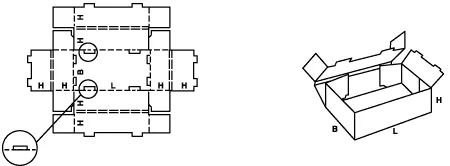 Главная особенность — сборка без клея, скотча и скоб. Коробка фиксируется за счет специальных замков (язычков), что ускоряет упаковку и снижает затраты на расходные материалы.